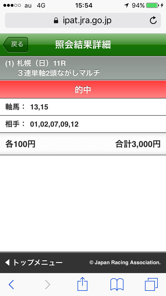 三連複取ったわ