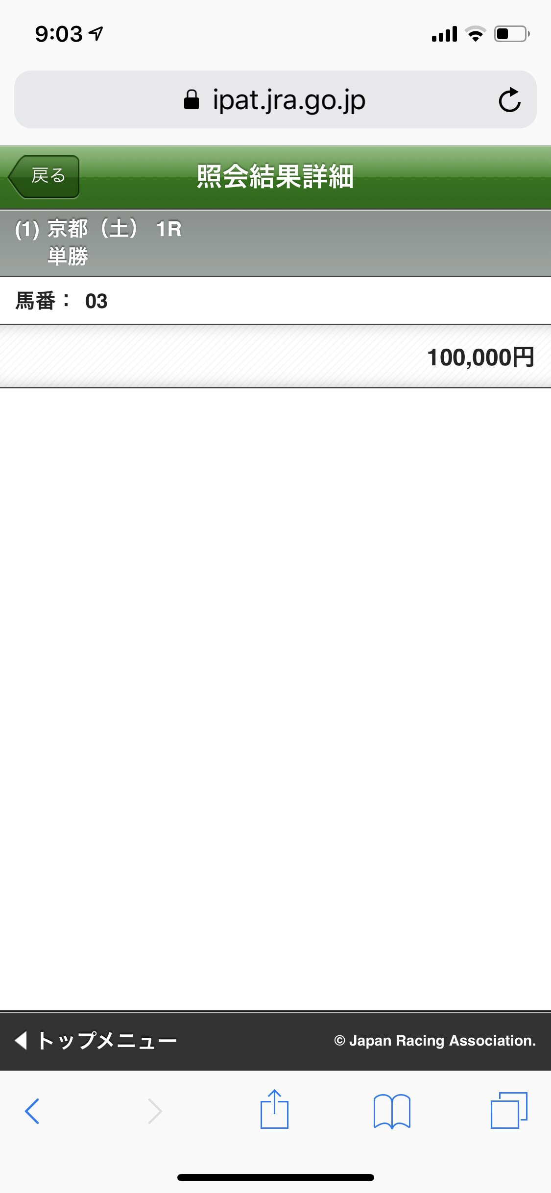1.4倍に賭けて10万を失う。競馬怖いなぁwww