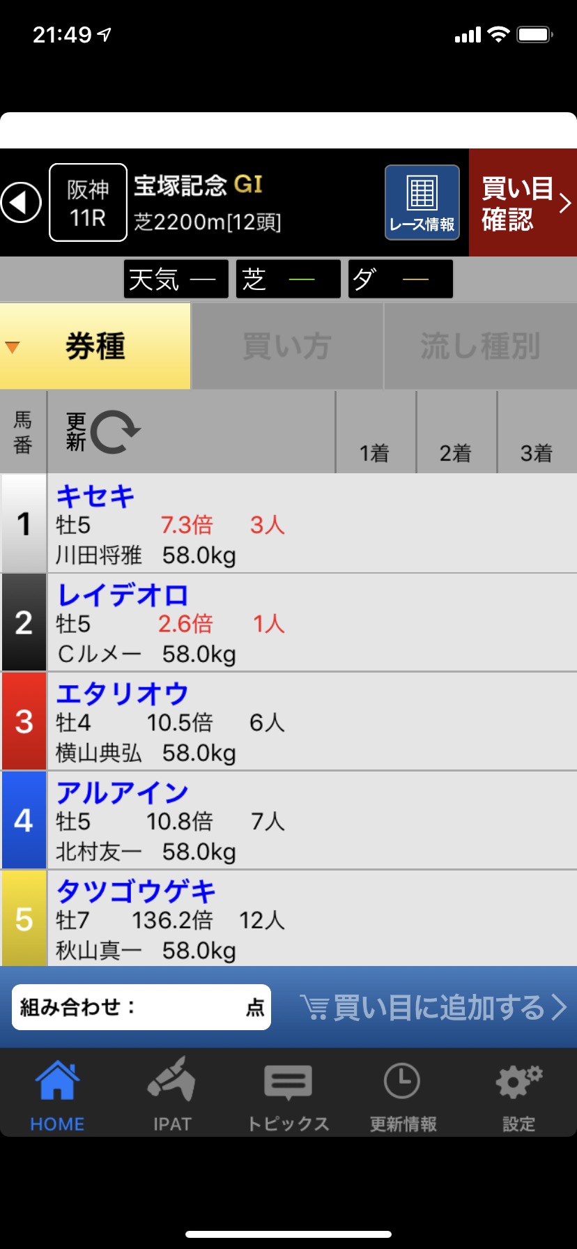 天皇賞本命にして、大敗北した瞬間に宝塚で本命にしようと思ったわ