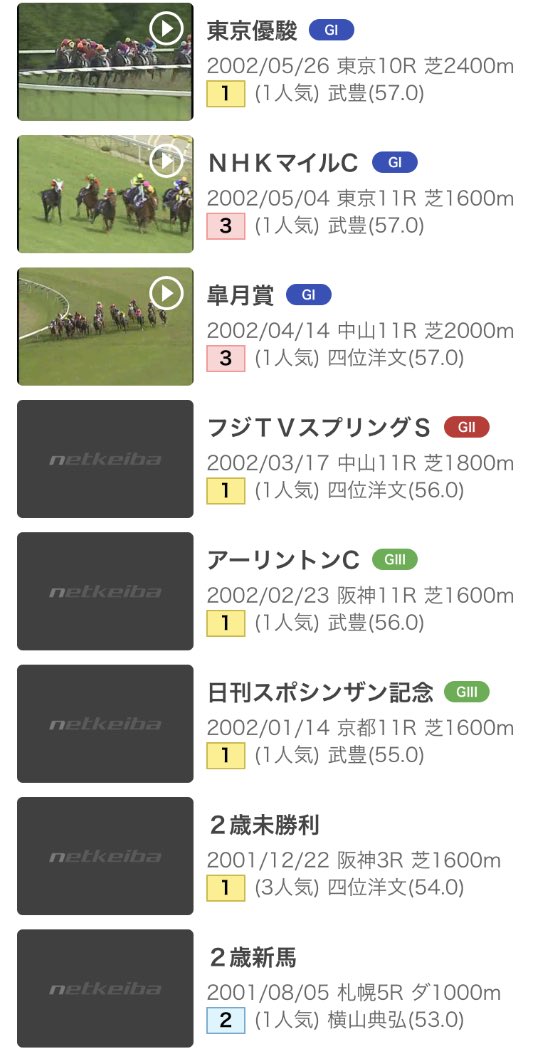 もったいないのはラトルスネークとクレスコグランドが怪我で大成出来なかったこと。クレスコはなんとか種牡馬入り出来たけど