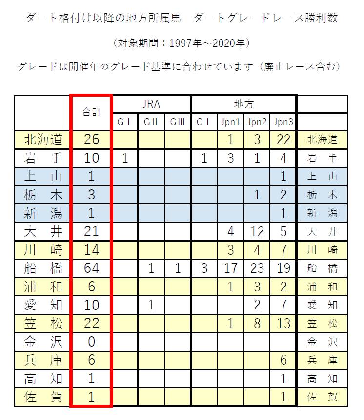 ダートグレード自体、南関が厚すぎるから、集計自体を他地区勝利とかに絞ったほうが良いわ。
