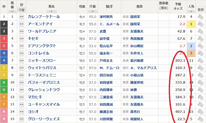 人気どころ全部外枠の方が真の力がわかってよかったのにな