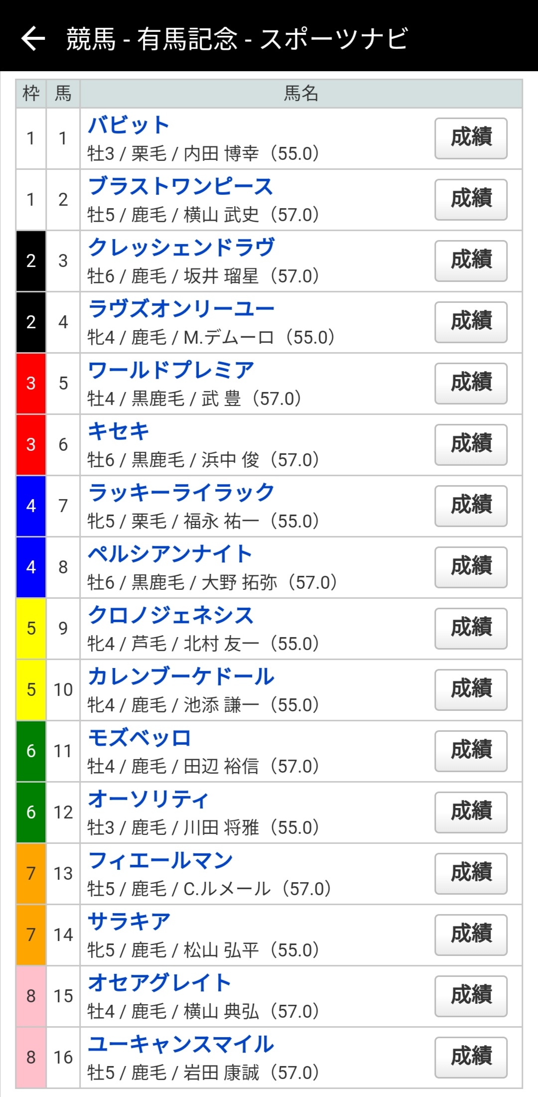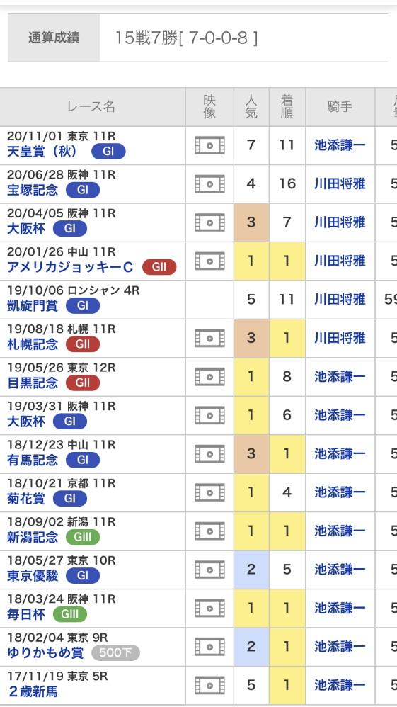 キセキって秋古馬三冠で1番有馬が適正ありそうやのに、いっつもお釣りない状態でくるよな