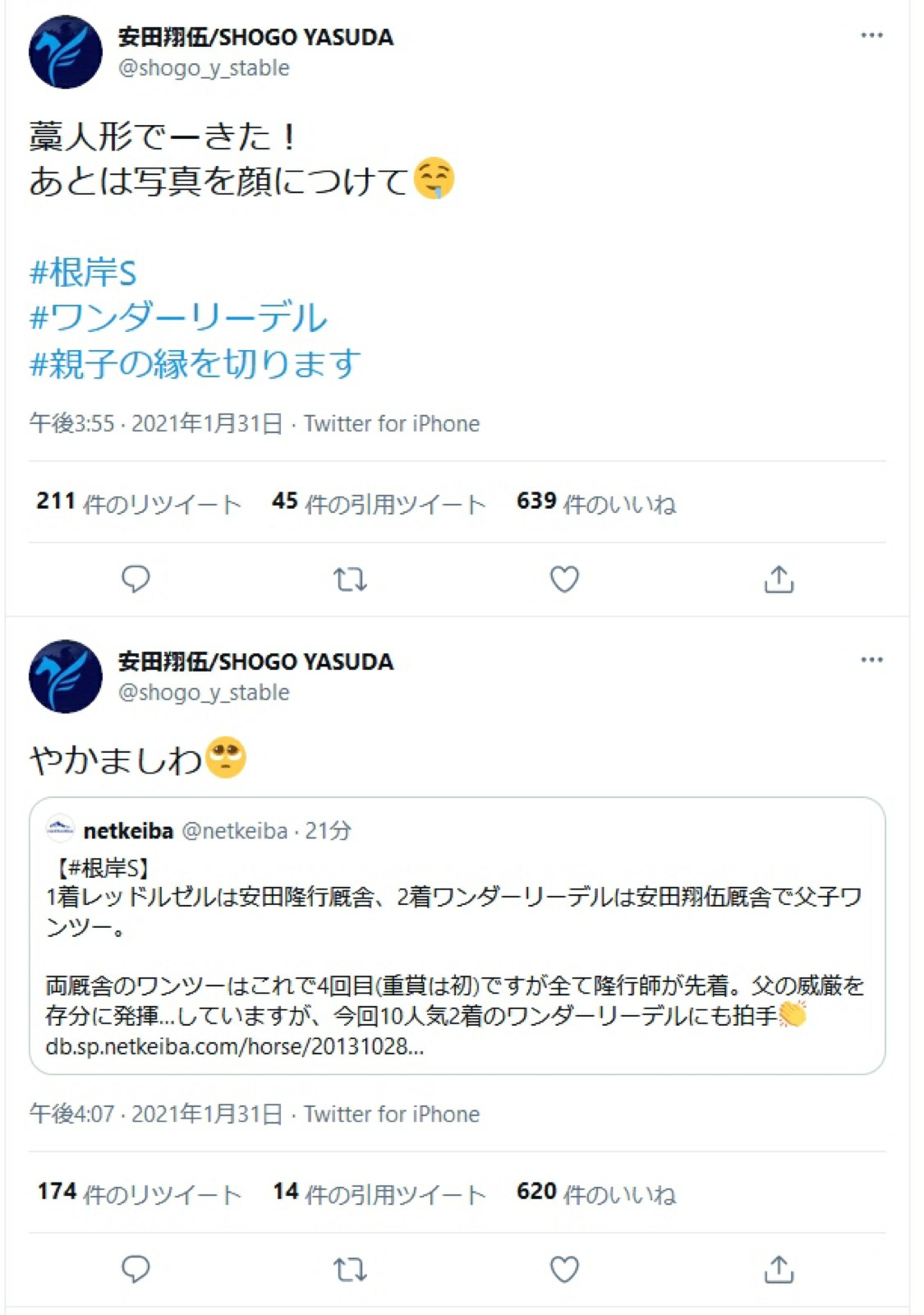 安田師「短距離を勝ったから短い血統ばかり預けられる(笑)