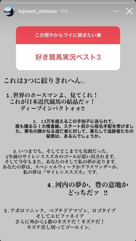 11. 「負けられない南井克己 譲れない武豊」が入ってないのか…