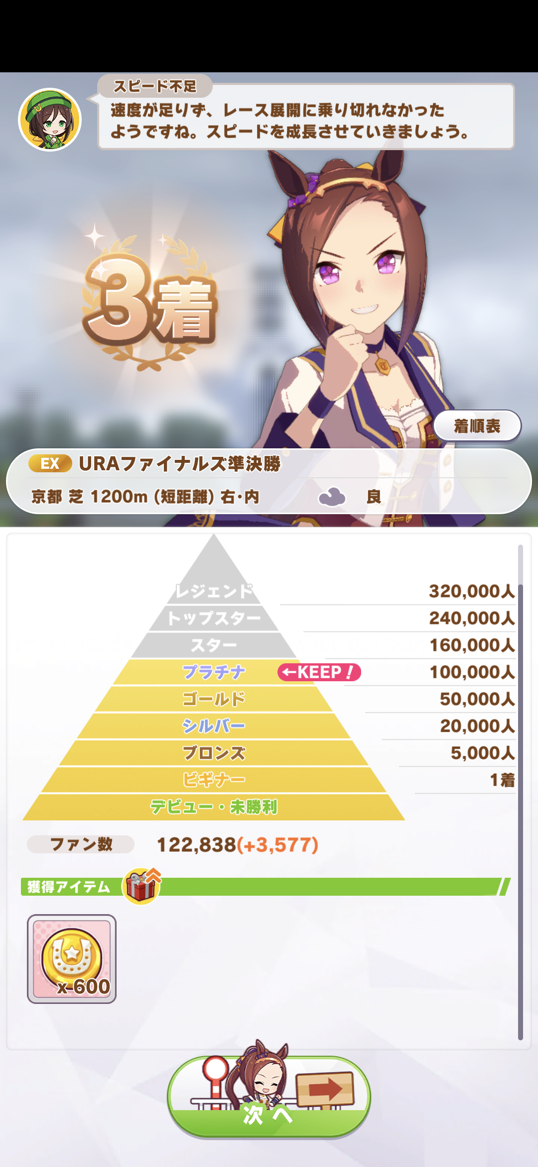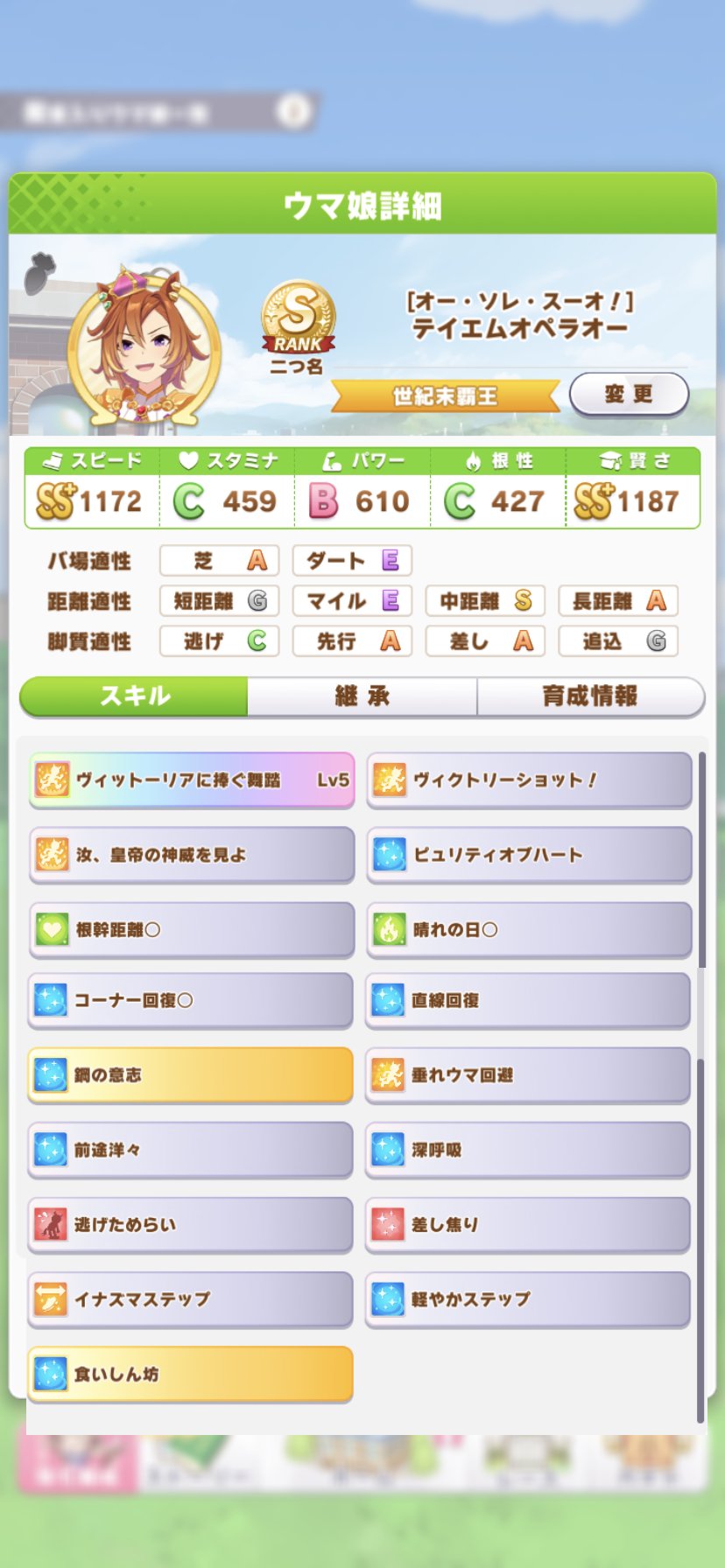 上位の馬と比べてスキルが少ないようです