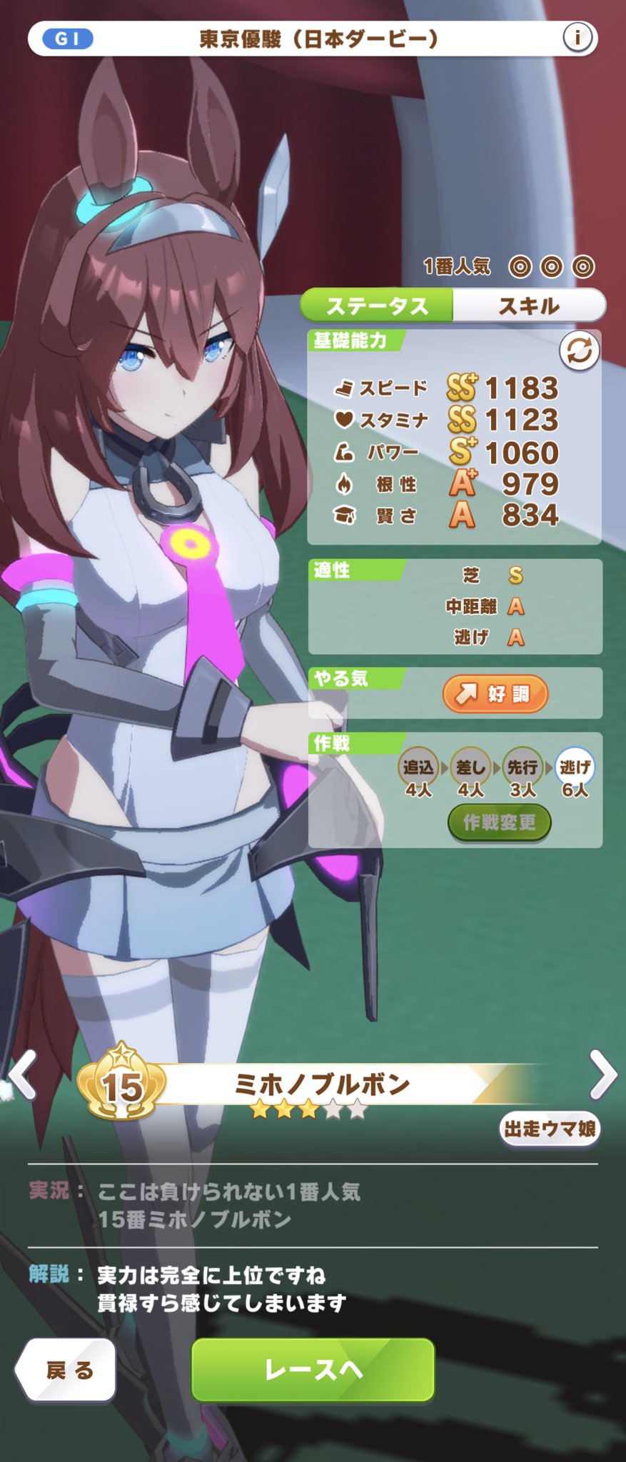 逃げが強すぎると思ってたけど差し追い込みで勝負できるウマが作れるとレースが面白い。
