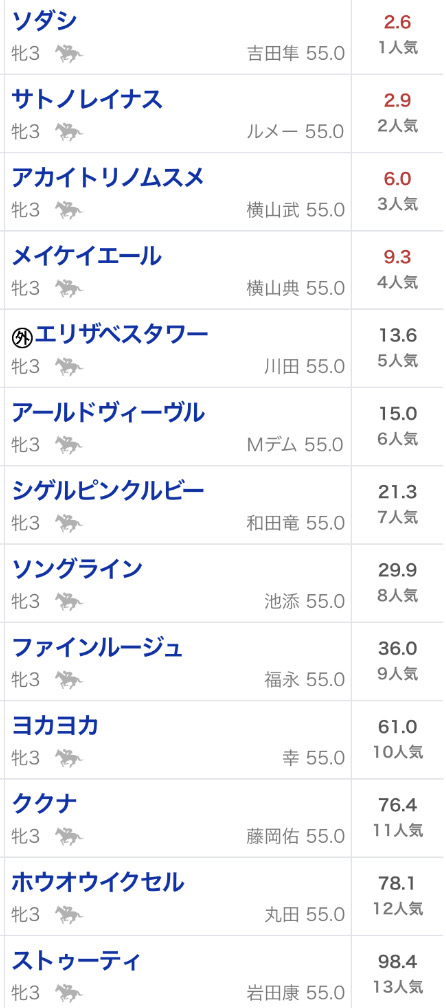 ソダシでいくわ信用してないやつ多いしオークスは買わんけど