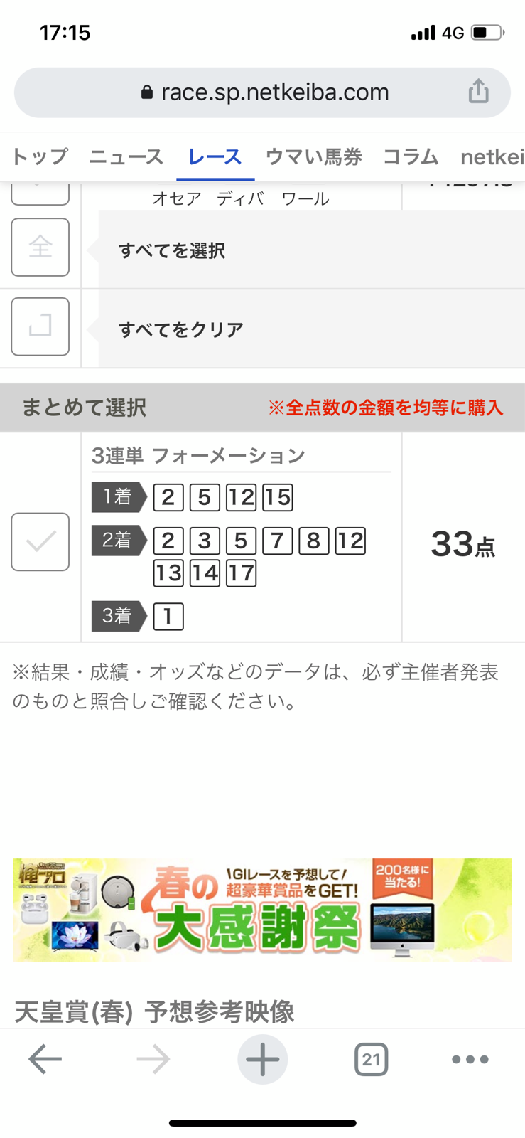 明日は素直にディープボンド軸で馬連勝負するわ。相手はワールドプレミア本線で、アリストテレス、ユーキャンスマイル抑え。後はディバインフォースで1発狙い。メロディーレーンの単勝の応援馬券も。ちなみに今年はGI0勝です。