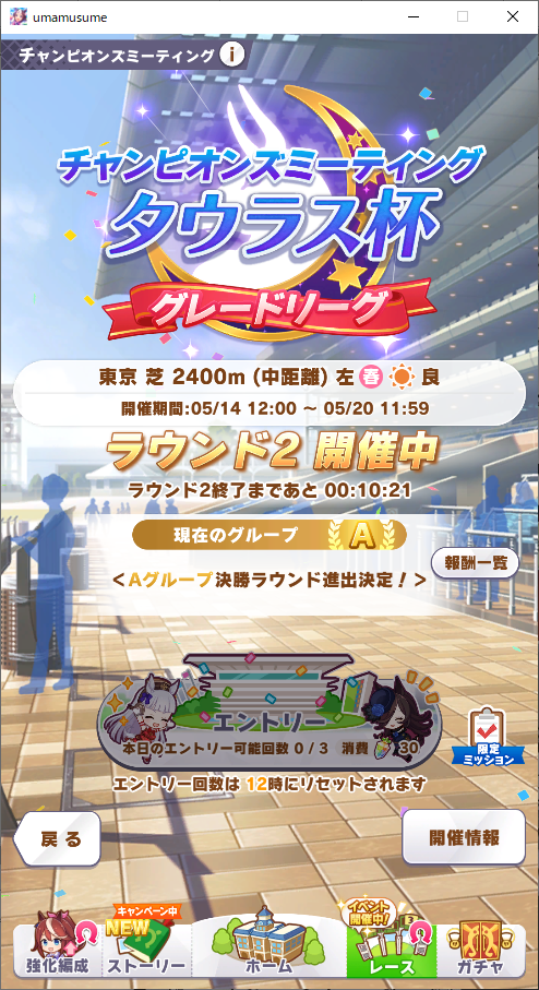 なんだかんだで競技場ないと育成する気もけっこう削がれるな