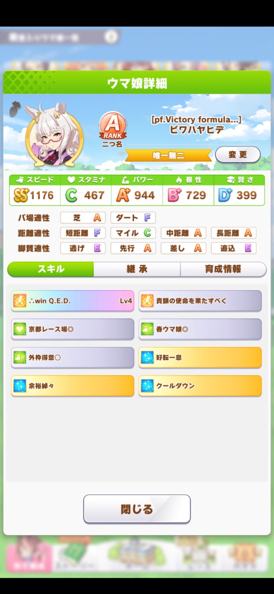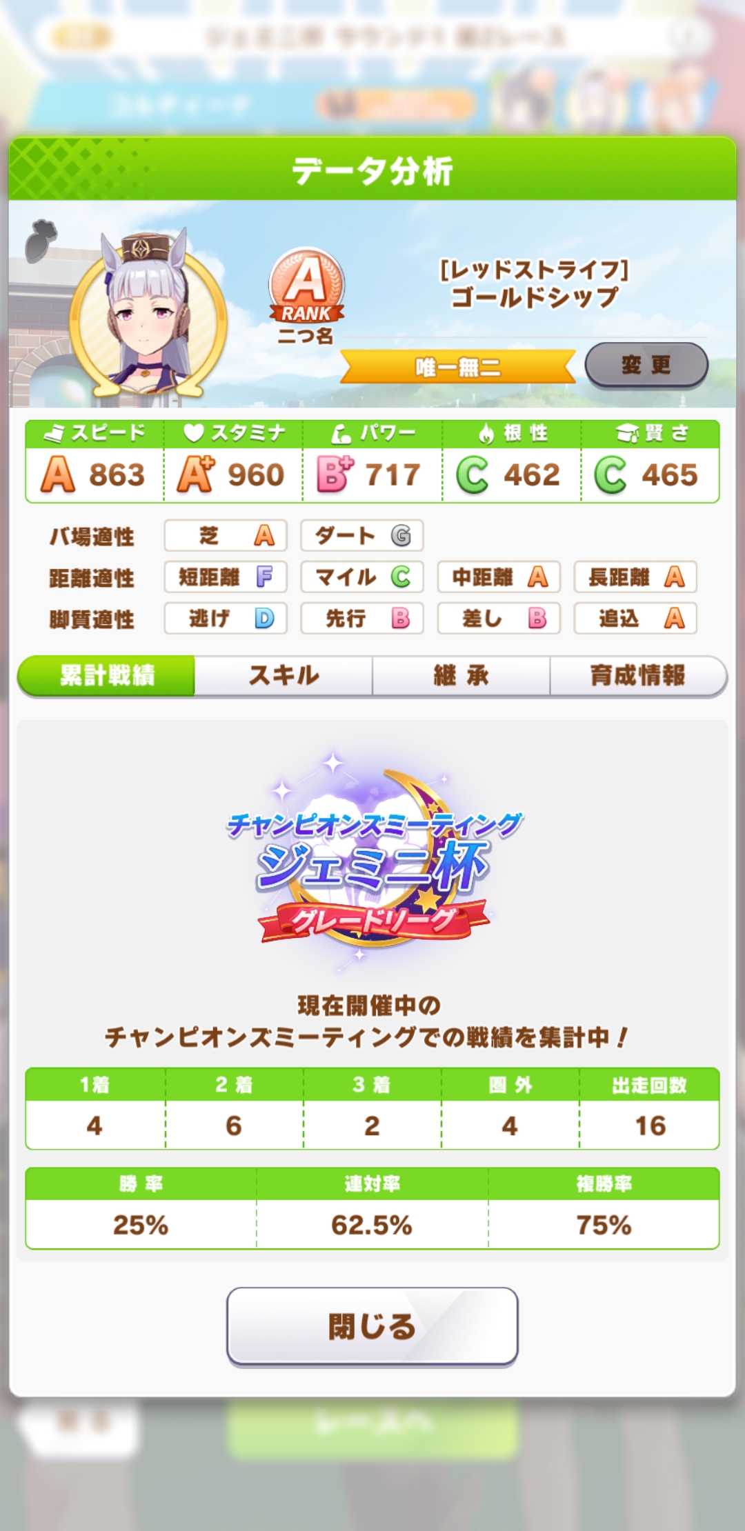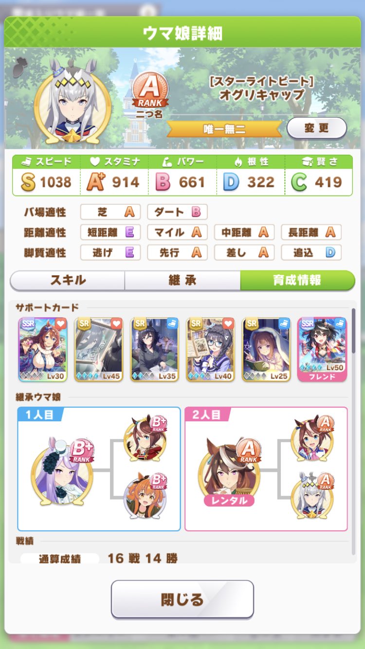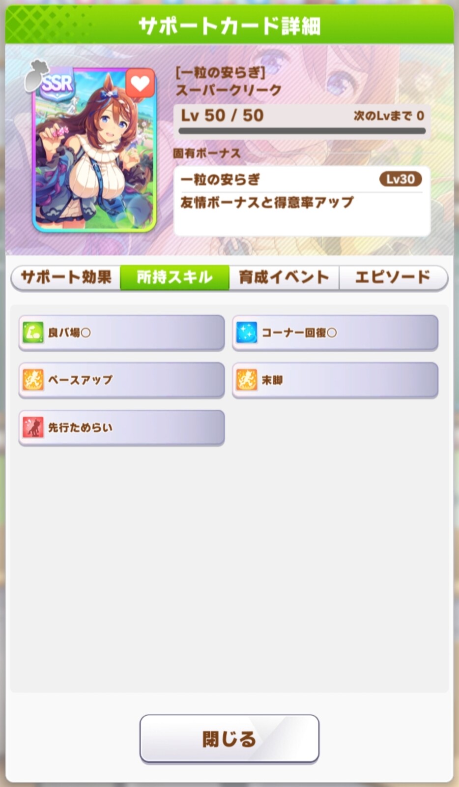 追込みのコツとか視野スキル取って中盤の追い上げスキルも取れたらええけど相当育成ハードル高い