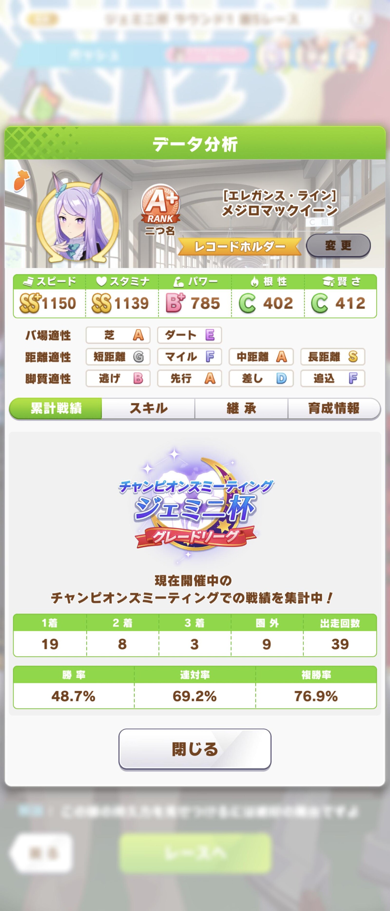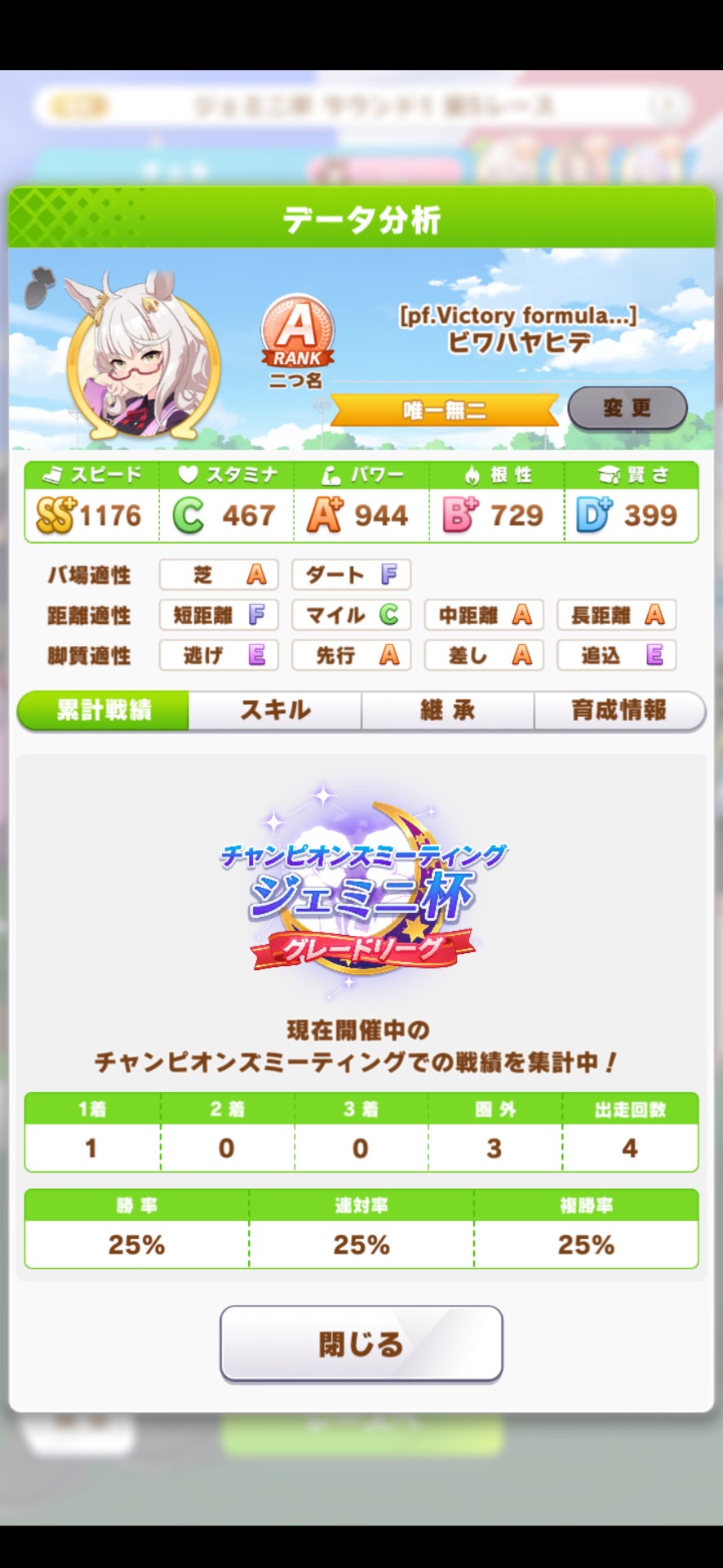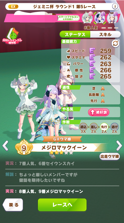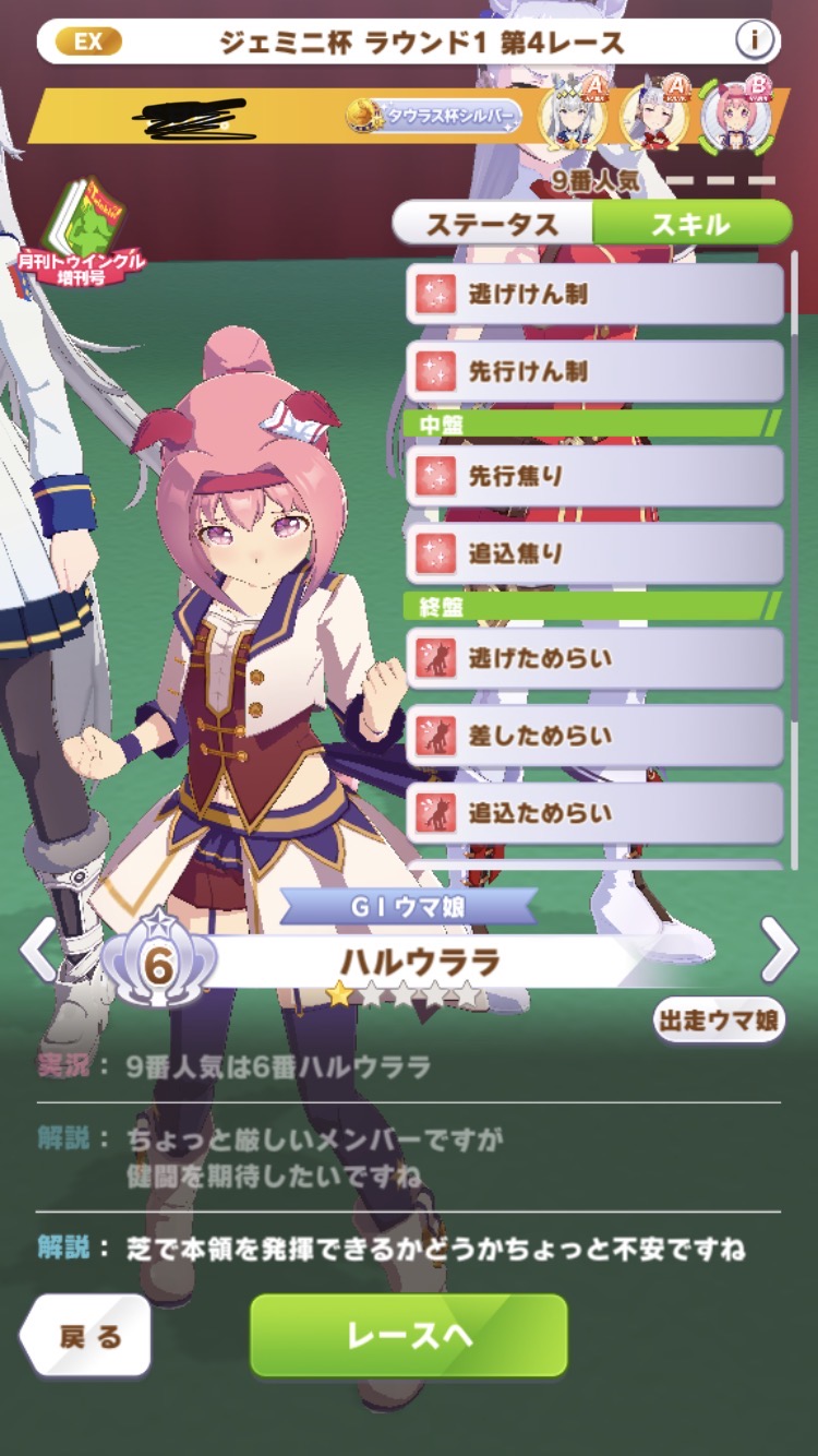 追込みのコツとか視野スキル取って中盤の追い上げスキルも取れたらええけど相当育成ハードル高い