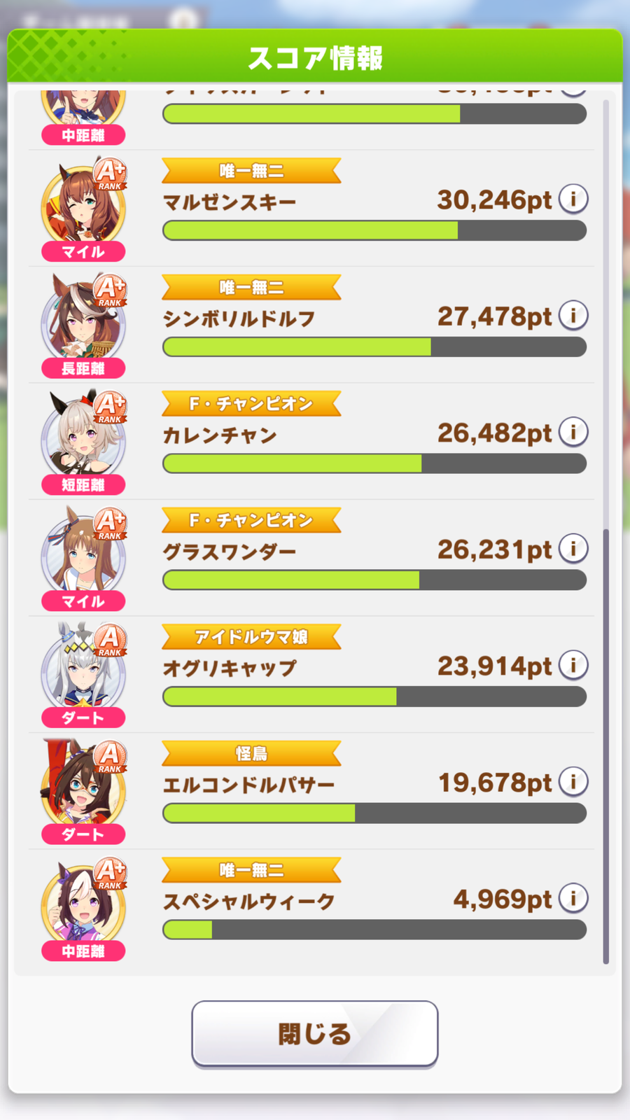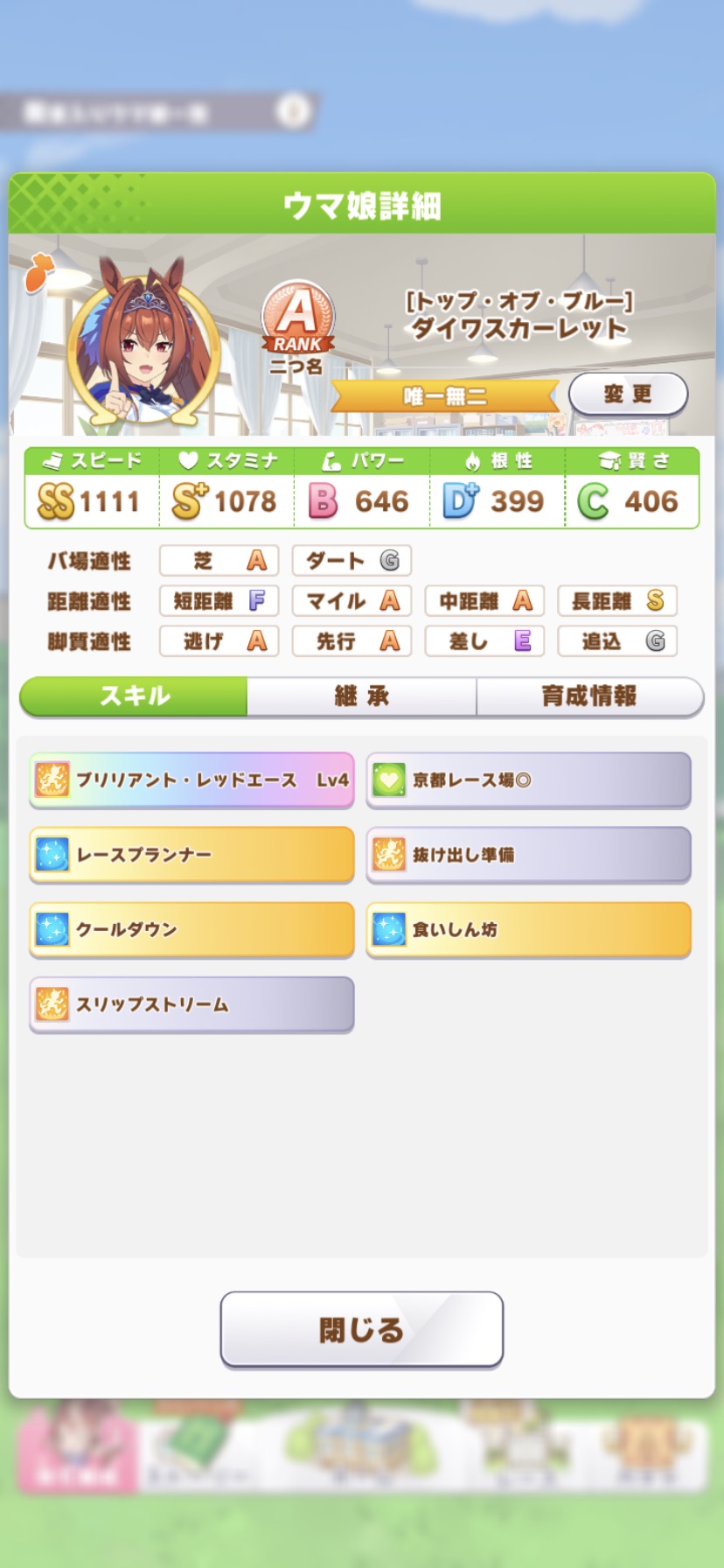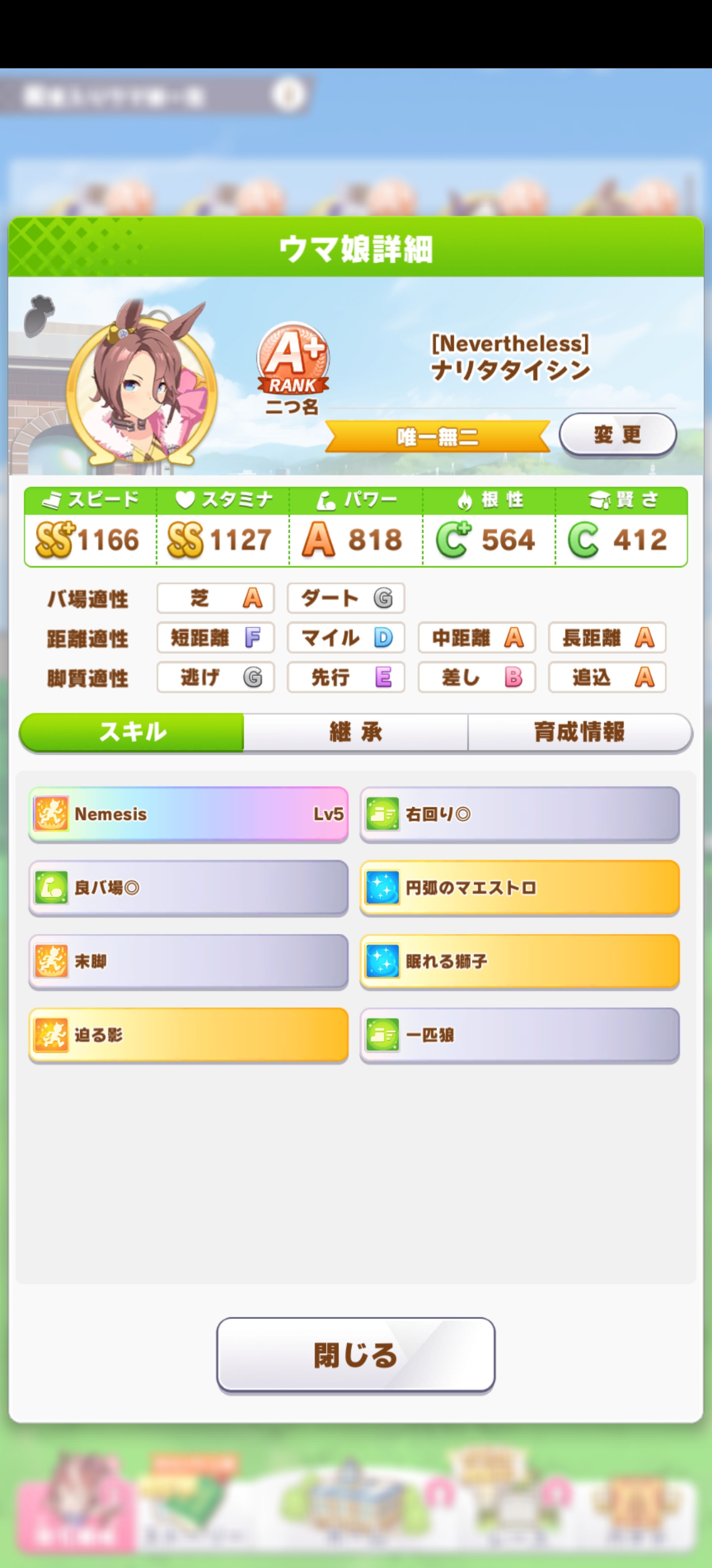 ワイのゴルシスピード950スタミナ1200でも勝ちまくっとるけどスピード1050スタミナ1200のナリブは負けまくっとるしよく分からん