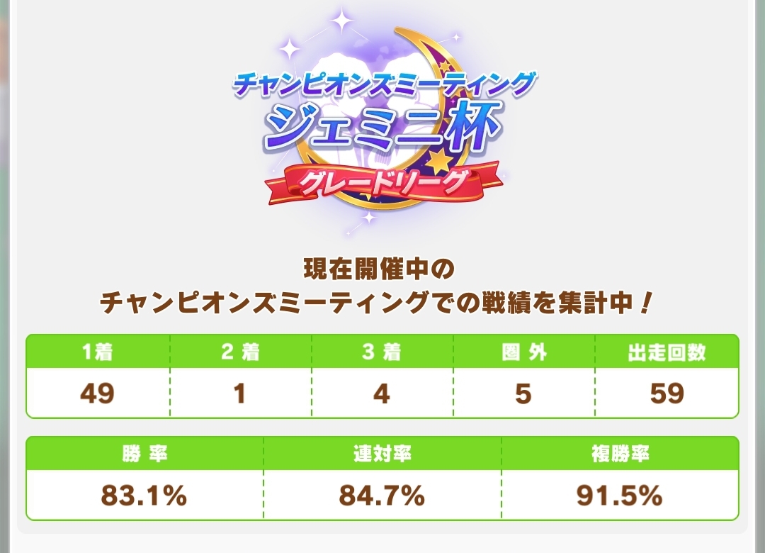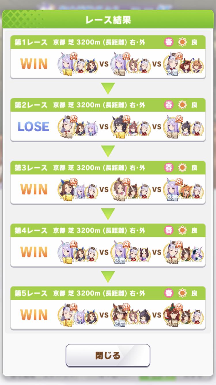 とりあえず3勝出来たけどゴルシの勝率が一気に下がったわ