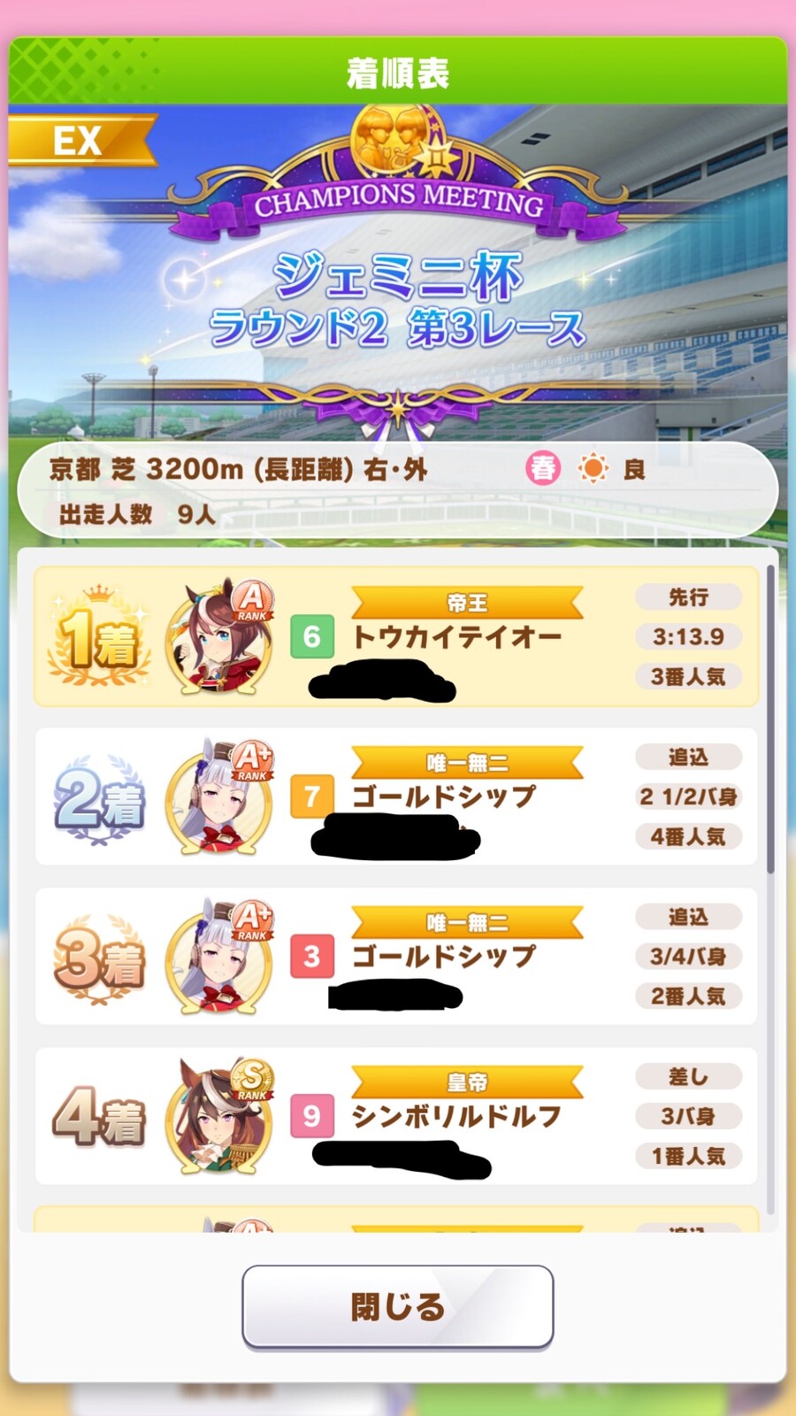1回戦でゴルシゲーになったから今日のレースワイのオグリ先行が短期逃げになって安定して勝てたわw