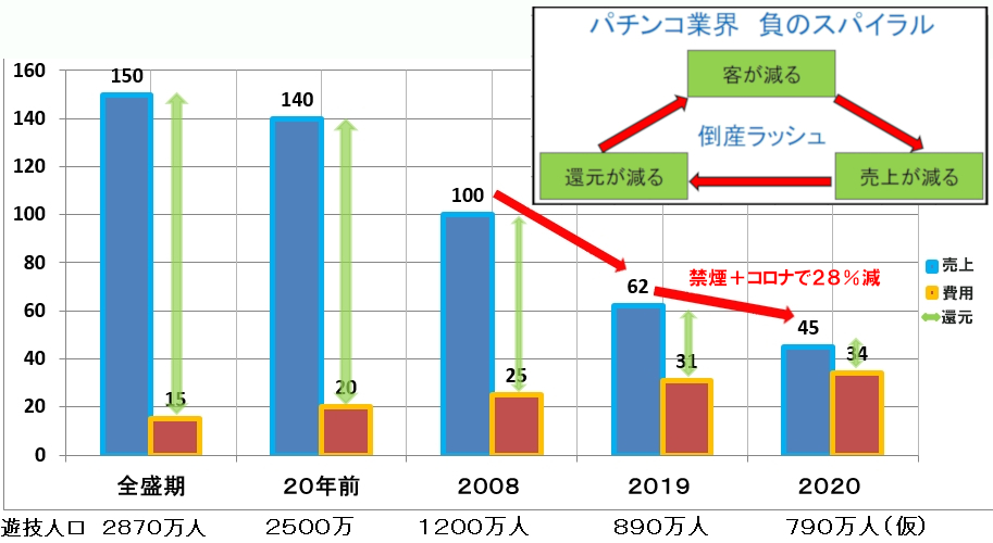 パチンコ屋が終わったのは完全禁煙の影響もあるかと