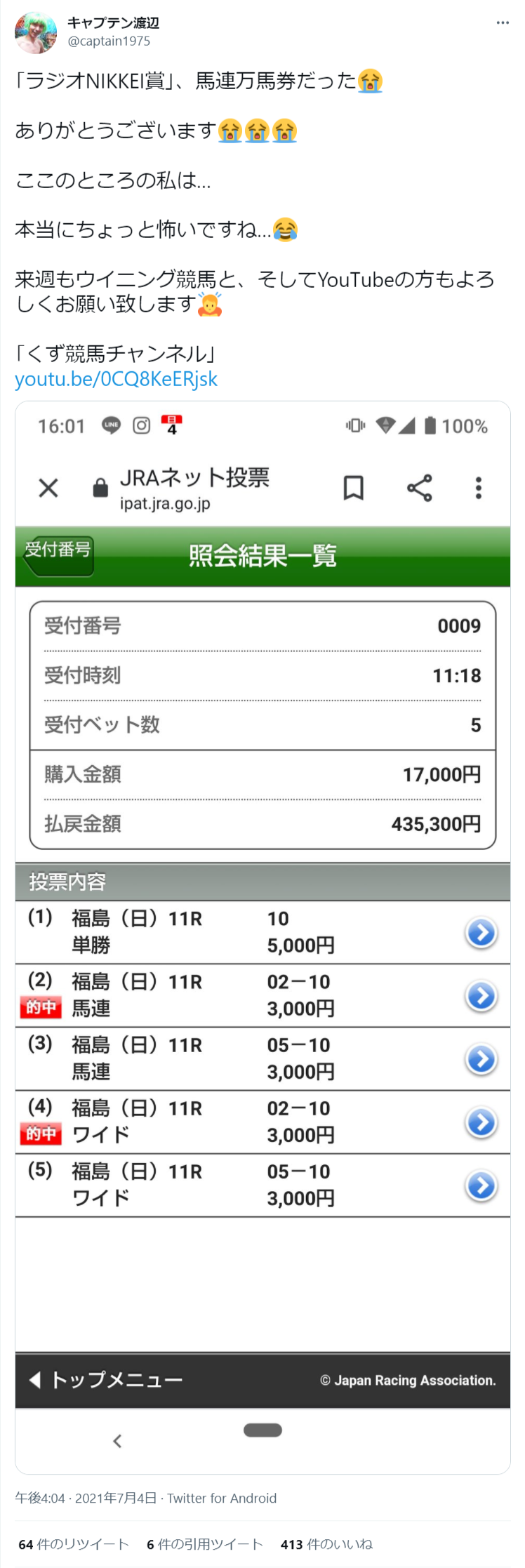 18:名無しさん@実況で競馬板アウト:2021/07/04(日) 16:06:03.69 ID:x86JvbCA0.net