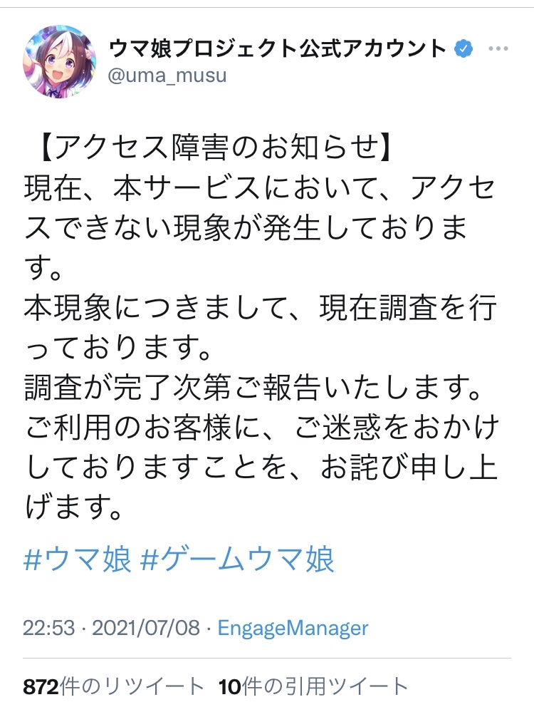 ウマ娘の鯖落ちちゃん