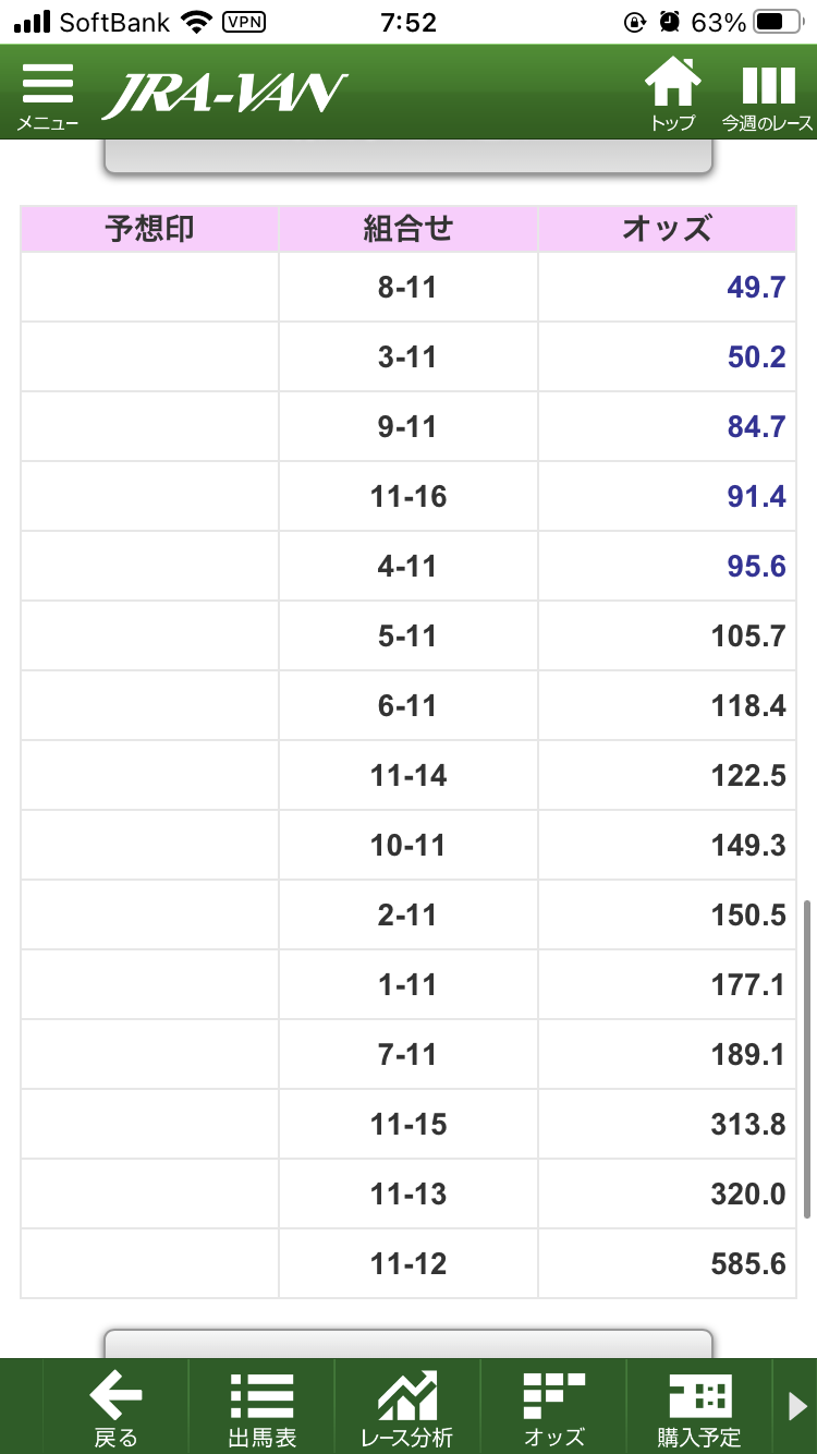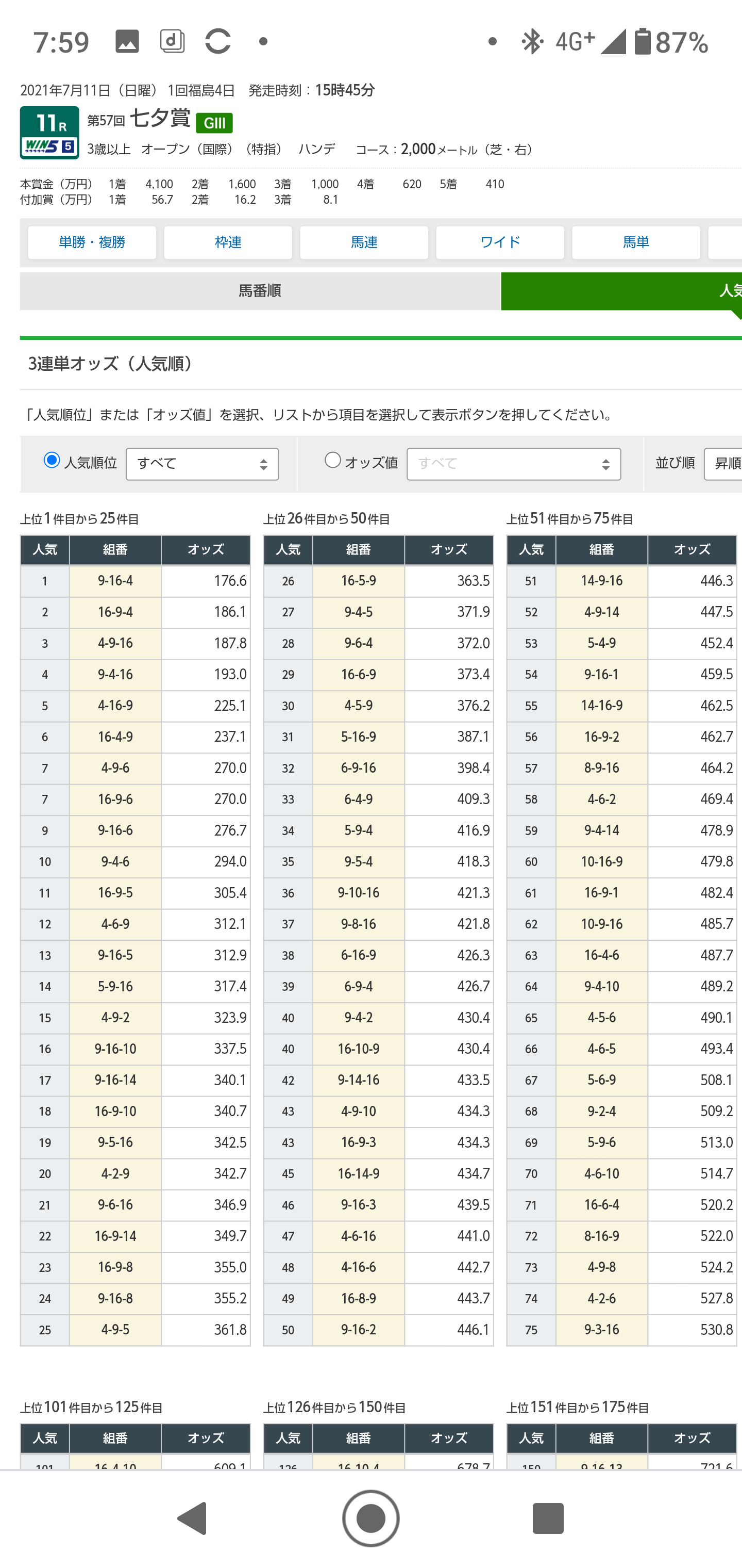 3連複全通りのオッズみたらプロキオンの方がオッズついとるな