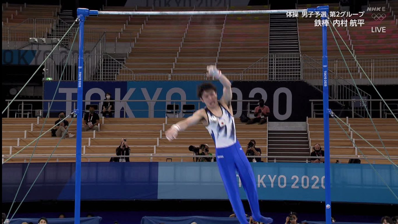 体操の内村航平は鉄棒で落下し、予選落ちした