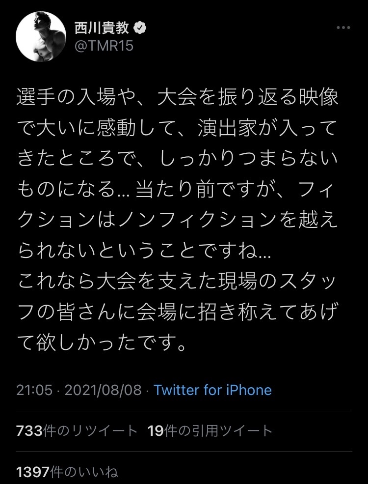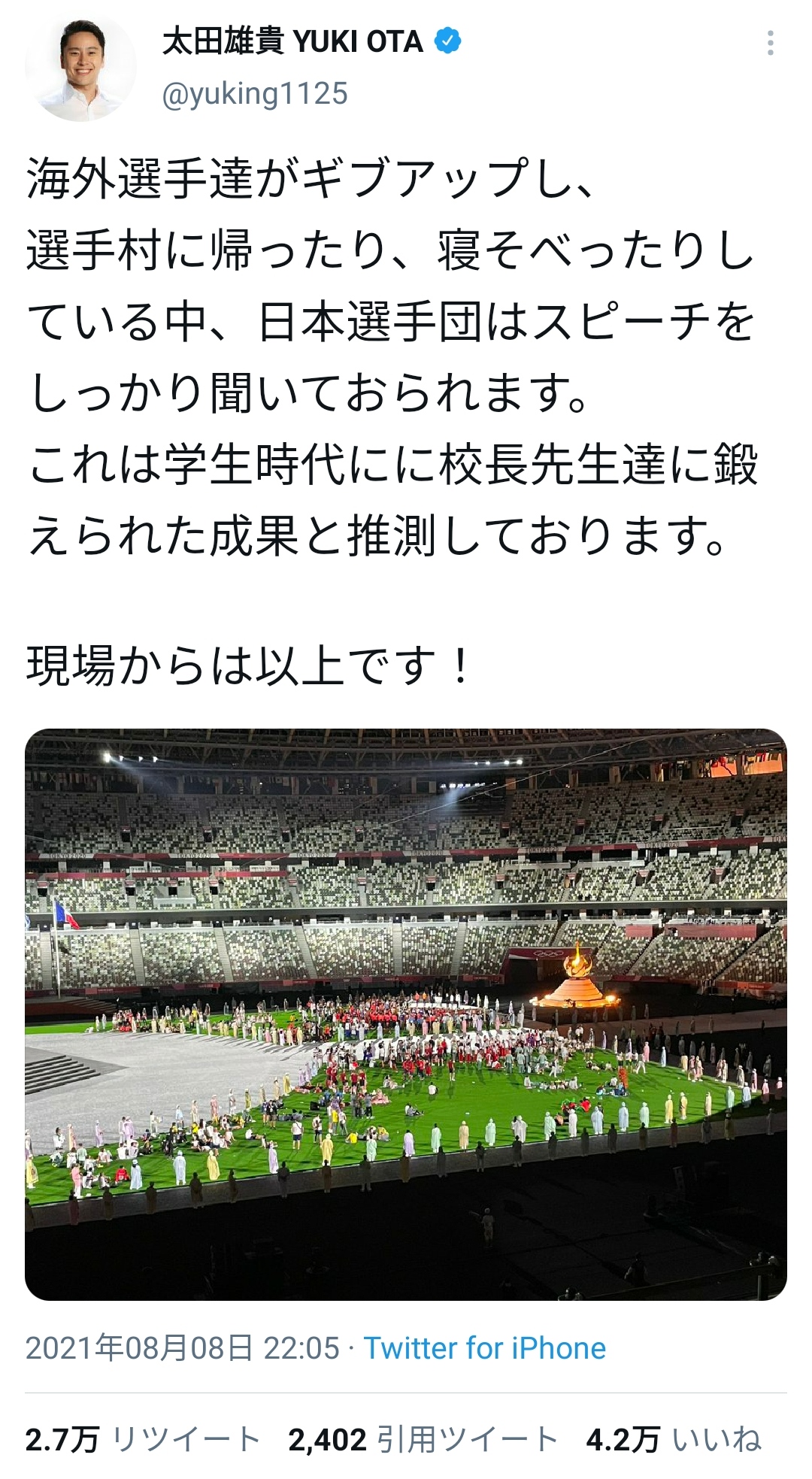 クソみたいな開会式閉会式やったな。まぁこれまでの経緯考えればしゃあねぇけど
