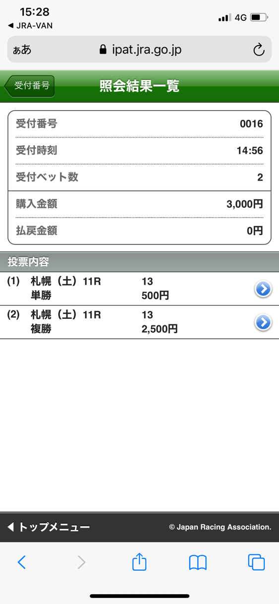 前走はペイシャキュウに裏切られたけど今回は流石に来るやろ