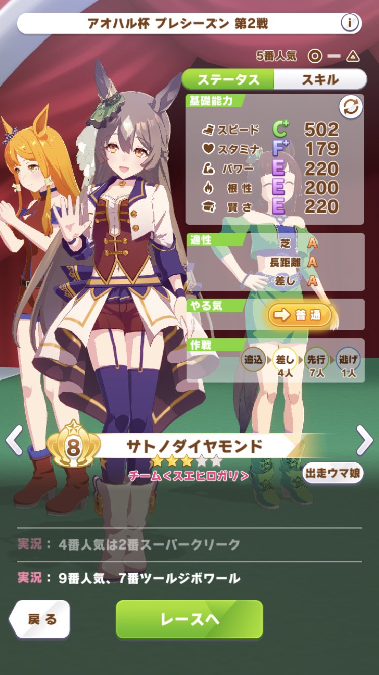 タイキ育成は余裕な感じで全勝したのに他のウマ育てたら決勝どころか途中で負けたわ