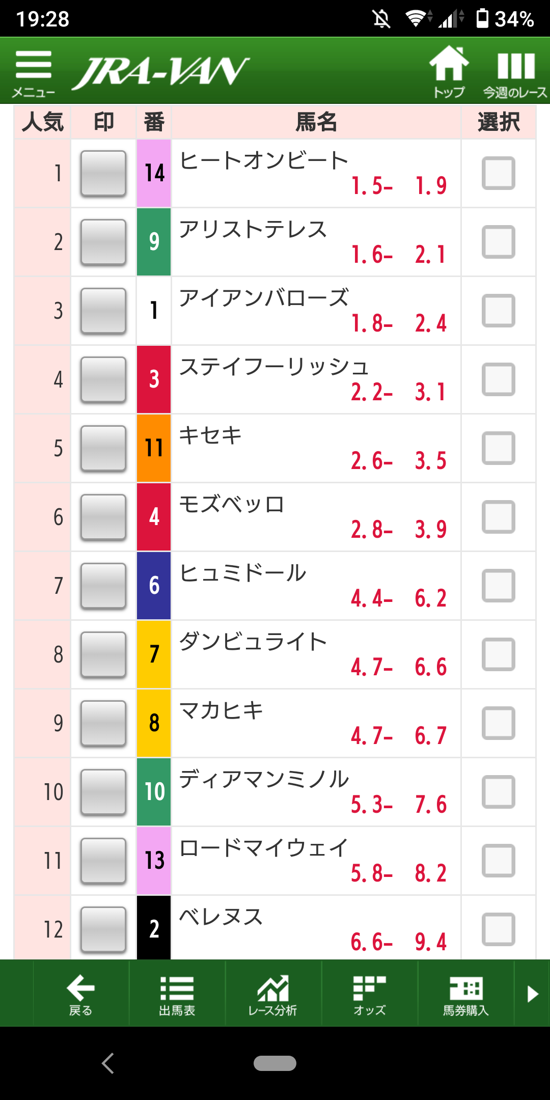キセキ、アリストテレス、マカヒキあたりを抜いた人気上位
