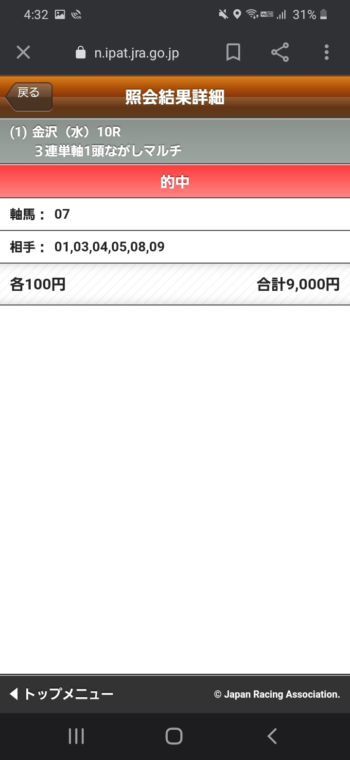 自信ないから人気上位の馬軸にして直感でぴんと来たの絡めて数点だけ買ったら軸だけ飛んだ