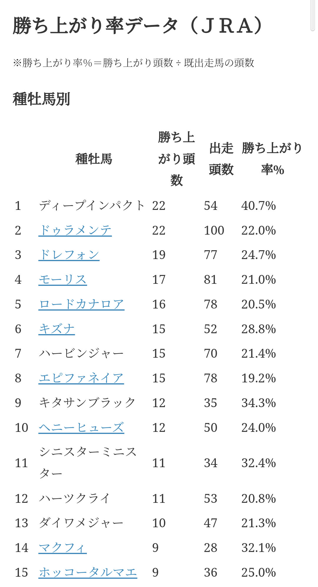 勝ち馬率高くて重賞馬多くてどんな条件でも走るだけの種牡馬やで