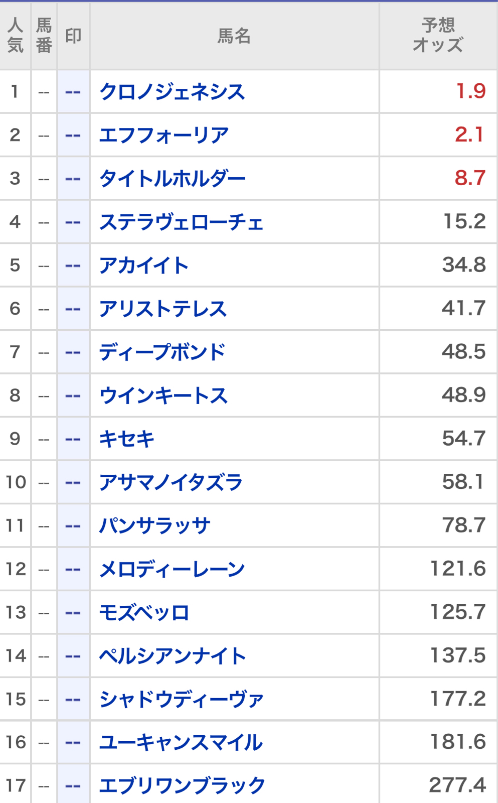 普通にエフフォーリア、タイトルホルダー、ステラヴェローチェのどれかが来て人気薄のおっさんが突っ込んでくるって認識で良さそうやな