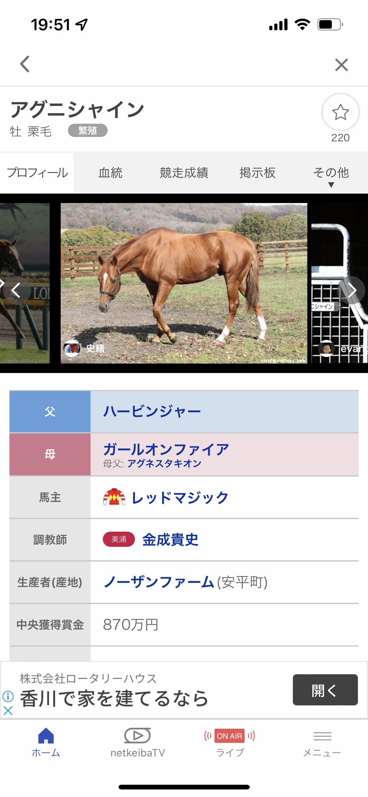 ハービンと違ってダートも見込めるから日高に行くかも知れんけど