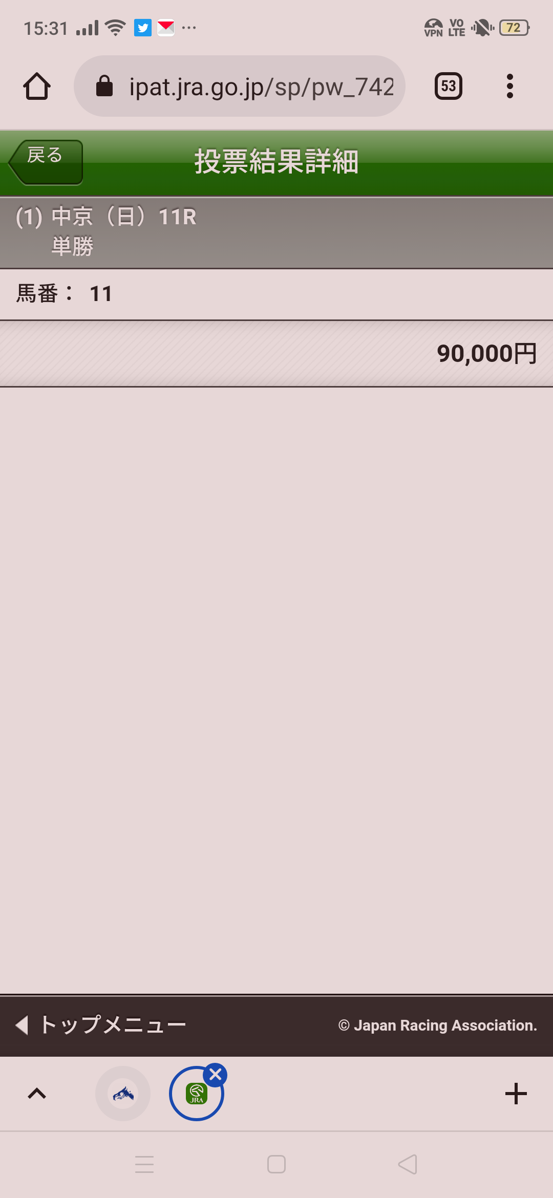 カデナそこそこ走りそうで複勝だけ買ったけど