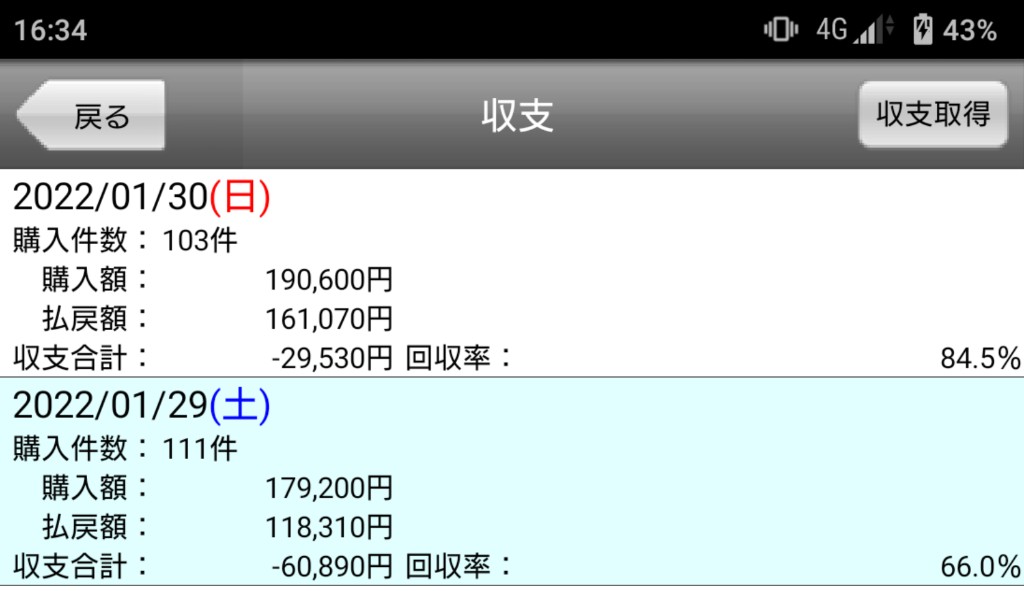 フル参戦2年目の今年も1月0%、予算買い目抑えてるから昨年の半分で済んでる