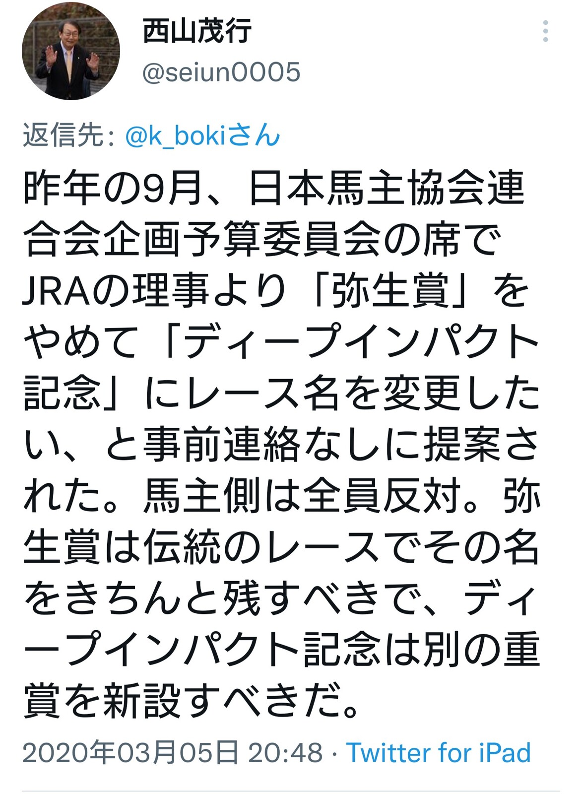 この件で、JRA理事が競馬界を混乱させた罪は大きいね。