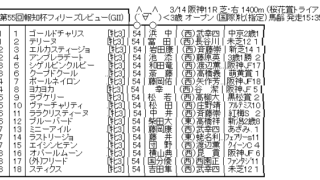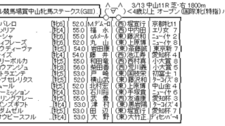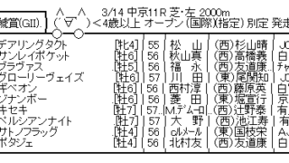 1:名無しさん@実況で競馬板アウト:2021/03/14(日) 15:43:08.60 ID:I0/P0ayL0.netダ2,400m(外)(10頭) 発走時刻 19:05 サラブレッド系 4歳以上 定量(重賞競走)指定 賞金 1着32,0...