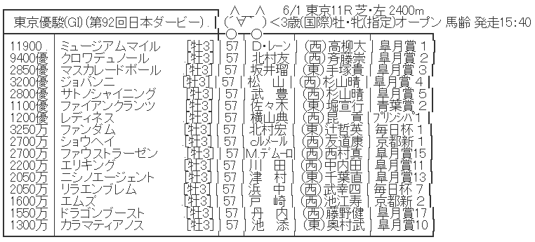 405: 名無しさん@実況で競馬板アウト 2025/05/28(水) 13:59:20.35 ID:zyP4EgeX0