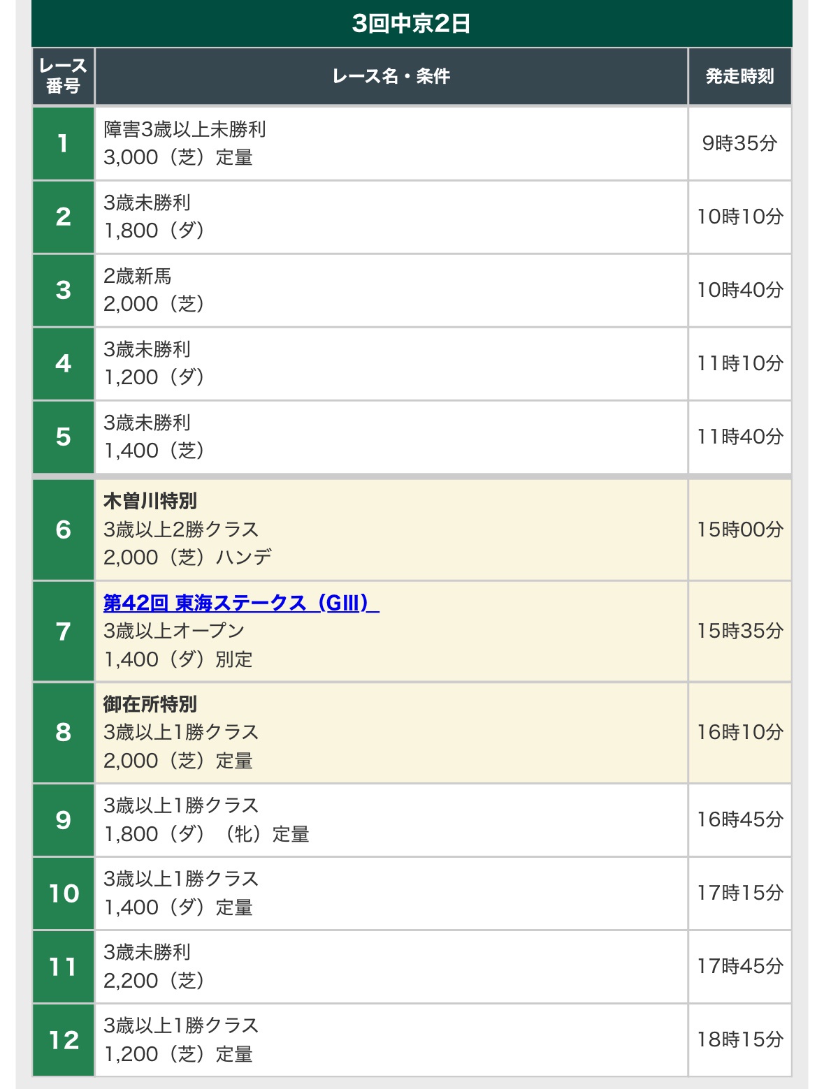 これって新馬戦は午前して、未勝利戦、条件戦は夕方頃になるんか?