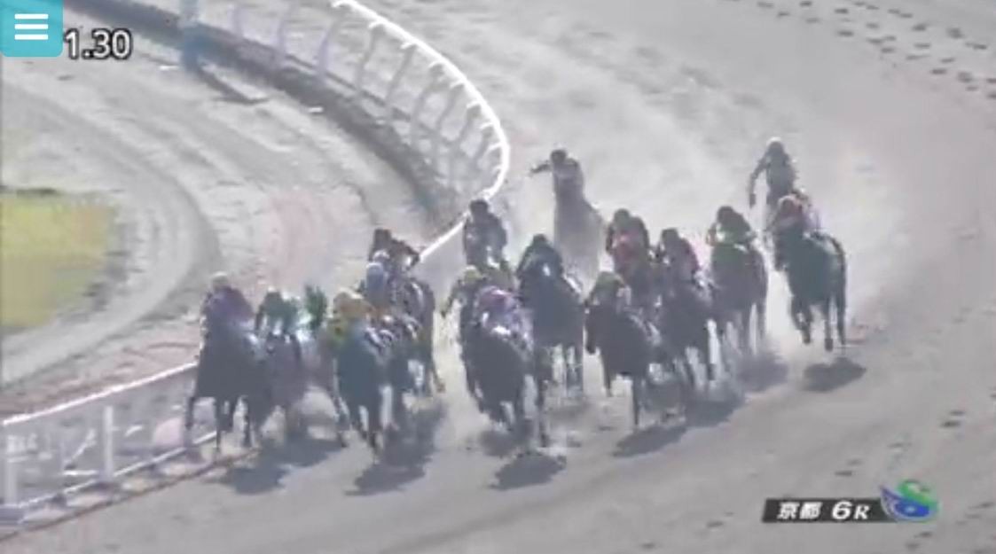 京都11R 4番 プリメラアスール 幸英明( 56.0Kg)→ 藤岡佑介( 56.0Kg)(落馬負傷)