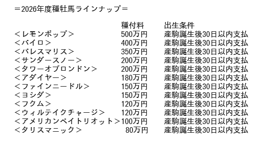2026年シーズンのスタリオンラインナップを発表いたしました!