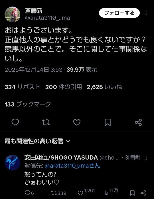 38: 名無しさん@実況で競馬板アウト 2025/12/24(水) 10:52:45.48 ID:JfiJj6cH0