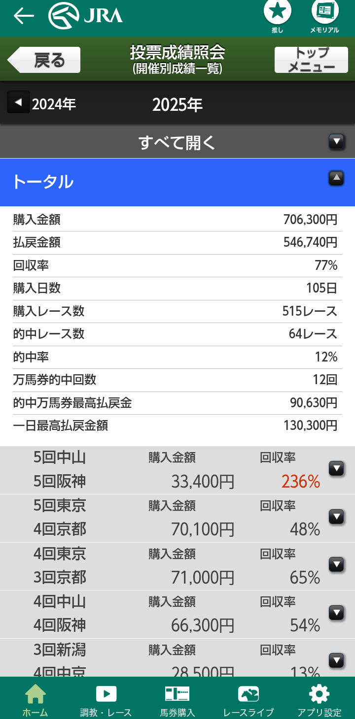 2年連続75%。どんな買い方しようが結局その数字に落ち着くように出来ている