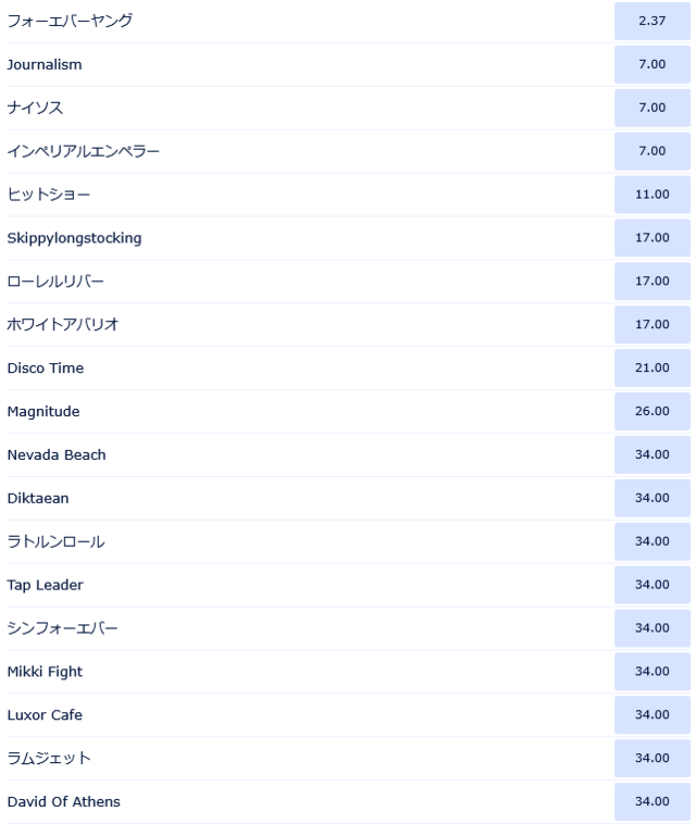 インペリアルエンペラーすごいな、UAEの馬でジャーナリズムナイソスと同評価とか