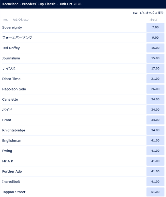 今年の優勝賞金1000万ドルはJRA基準で15億6733万円換算。既に日本賞金王のフォーエバーヤングの獲得賞金はこれで45億円を超え、”世界の賞金王”ロマンチックウォリアーも視界に。