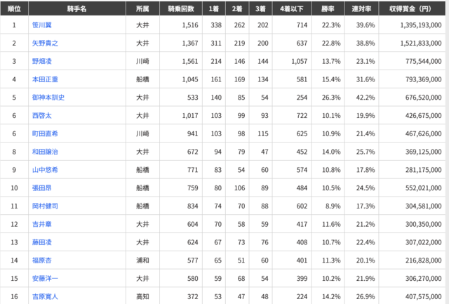 さすがにその2人よりはアレやが一応去年の川崎競馬リーディングではある