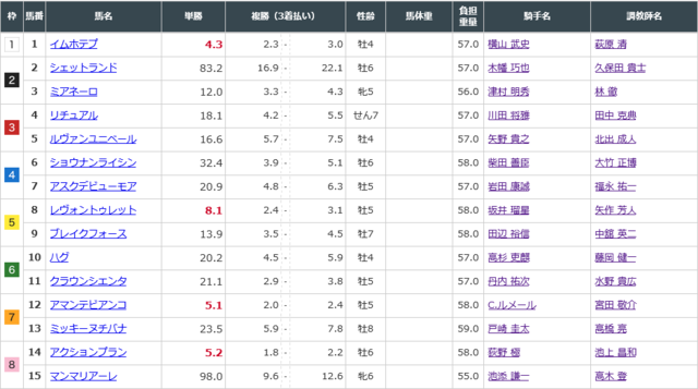 ◎ナムラエイハブ ○トーセンリョウ ▲グランディア △ニホンピロキーフ