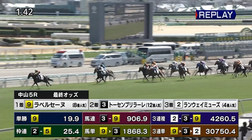 ラベルセーヌ今日が初出走で圧勝。これは大物の予感。オークスの最有力候補になってもおかしくない