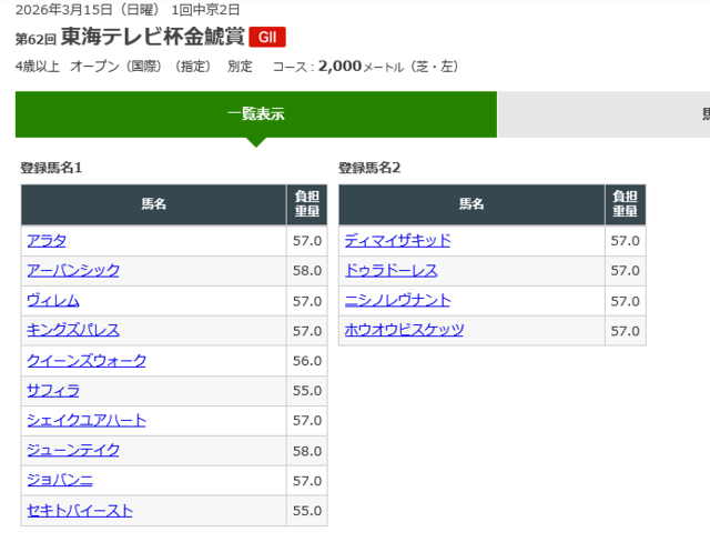 中内田記念金鯱賞は例年揃うイメージ