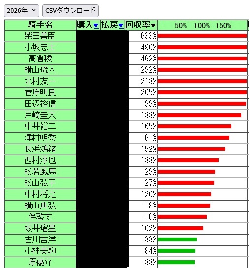 昨年は回収率215とかやったけど高田がめちゃ稼がせてくれた年やったな