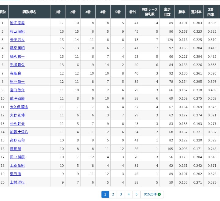騎手より調教師の方が向いてそうだと思ってたけどこの成績は文句なしでいいな